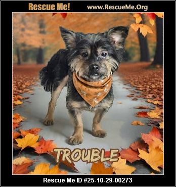 Who can resist the adorable face of Trouble? This little Yorkie and Australian Terrier mix charmer was born on